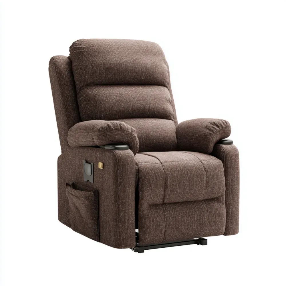 リクライニングチェア 布張り 85x90x105 cm – ブラウン – 収納ポケット付き