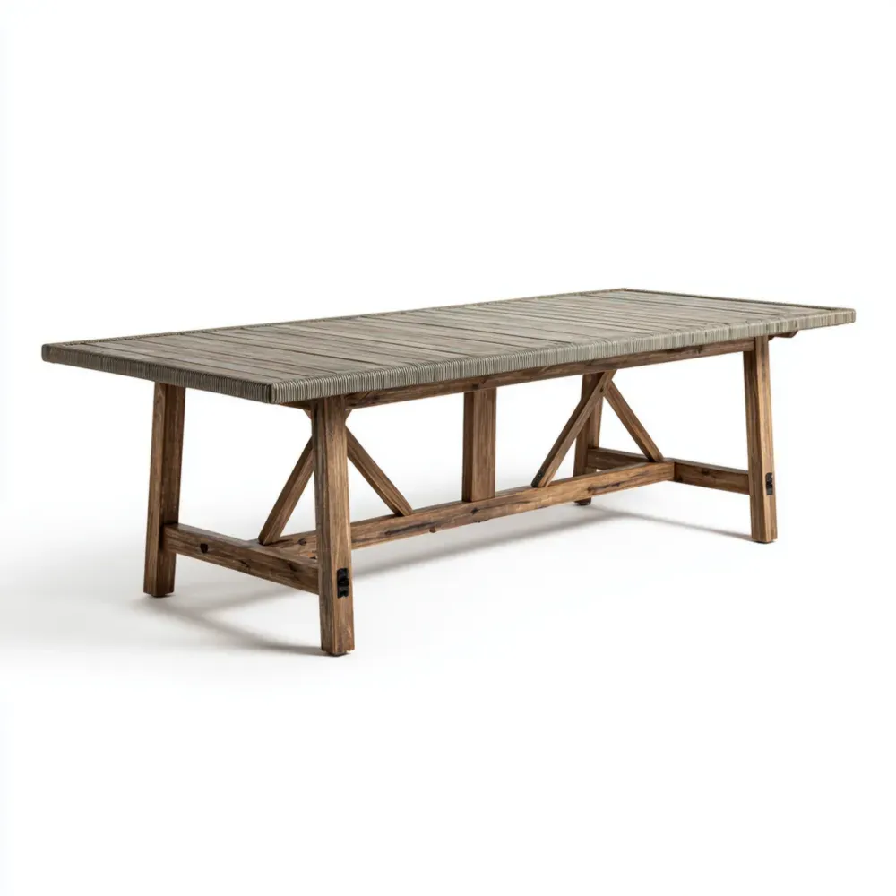 このガーデンダイニングテーブルは、天然木を使用した耐久性のあるデザインで、アウトドアでのダイニング体験を向上させます。